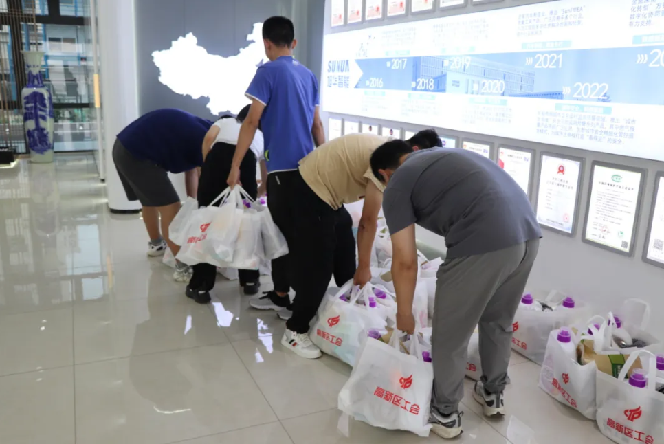 发放的慰问品包含洗衣液、毛巾、牙膏、风油精等近150份,在酷暑中送上清凉的同时,也送上了公司对员工的深切关怀。