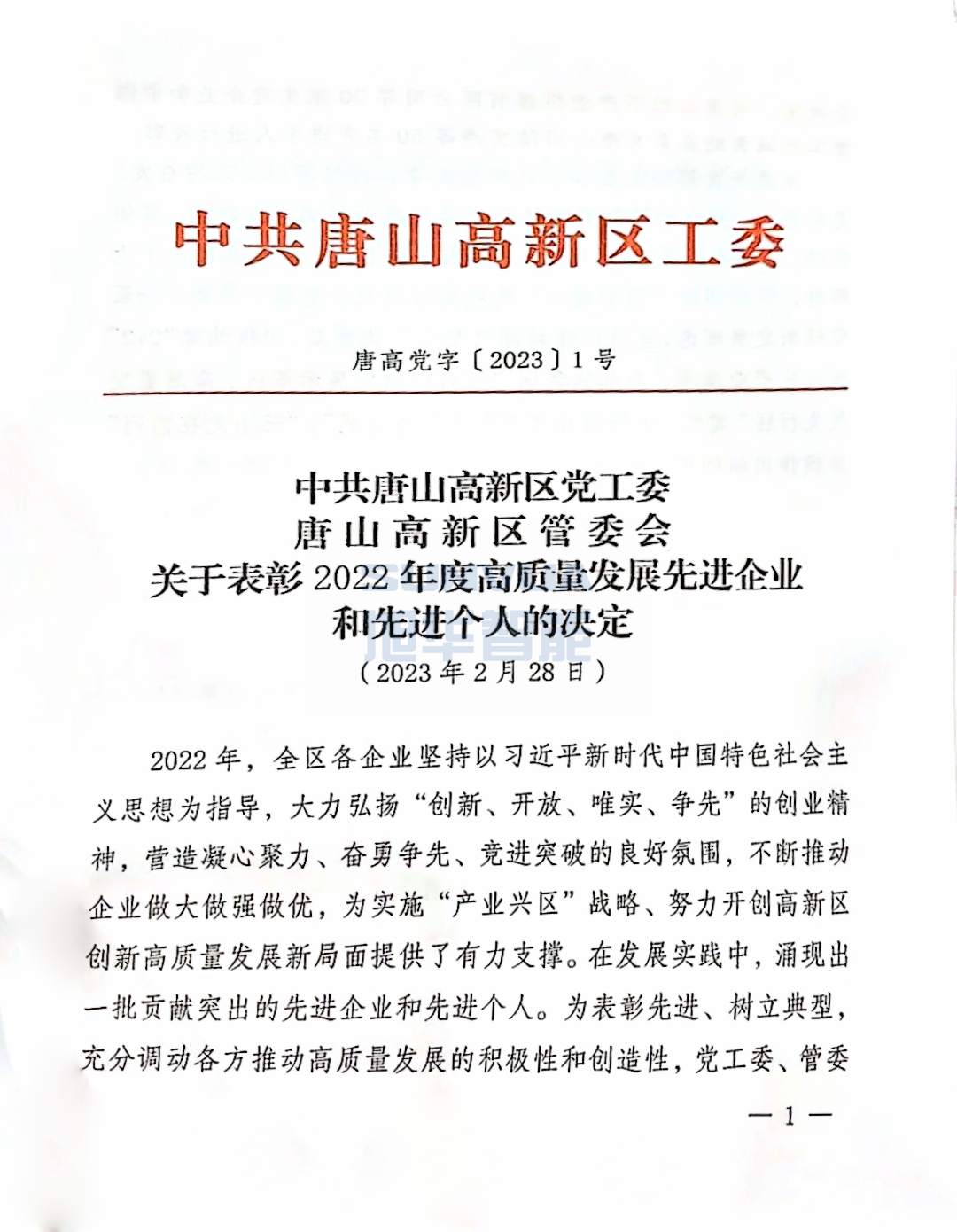 2023年3月3日,为进一步营造创新创业良好氛围,表彰先进、树立典型,不断有助于企业高质量开展。唐山高新区召开工作会议,会上,唐山kdpay钱包官网智能科技有限公司取得表彰,被评为“2022年度高质量开展先进企业”,总经理赵晨光荣获“高质量开展先进个人”荣誉称号。